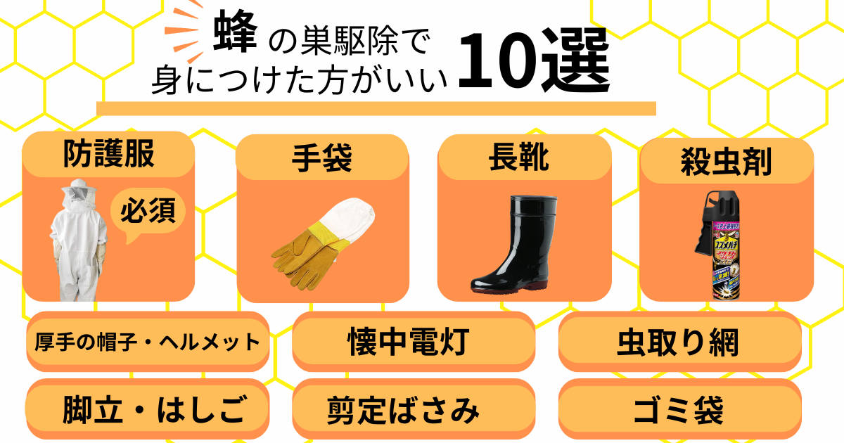 大事に至らないよう、身につけた方がいいものを必ず着用し、駆除を行いましょう。